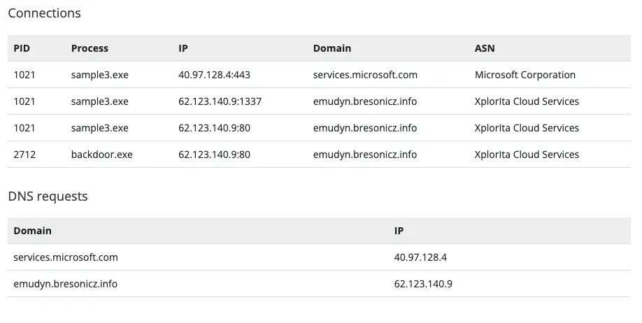 Paso 1: Después de analizar el reporte generado por Malware SandBox para el malware sample3.exe notamos como este hace peticiones a IP’s de un dominio en particular.